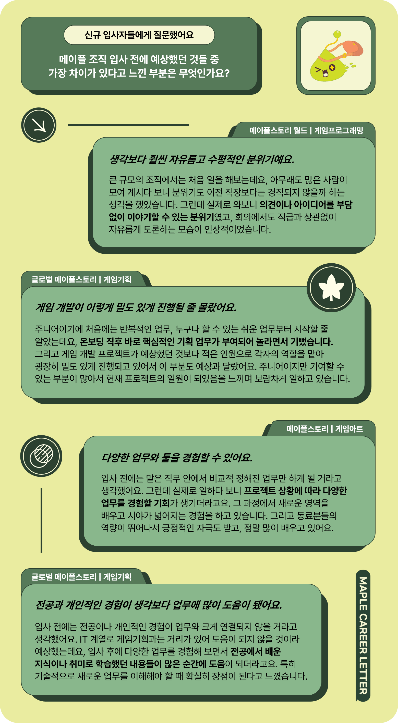 신규 입사자들의 이야기를 통해 '메이플 조직의 진짜 모습’을 소개합니다.